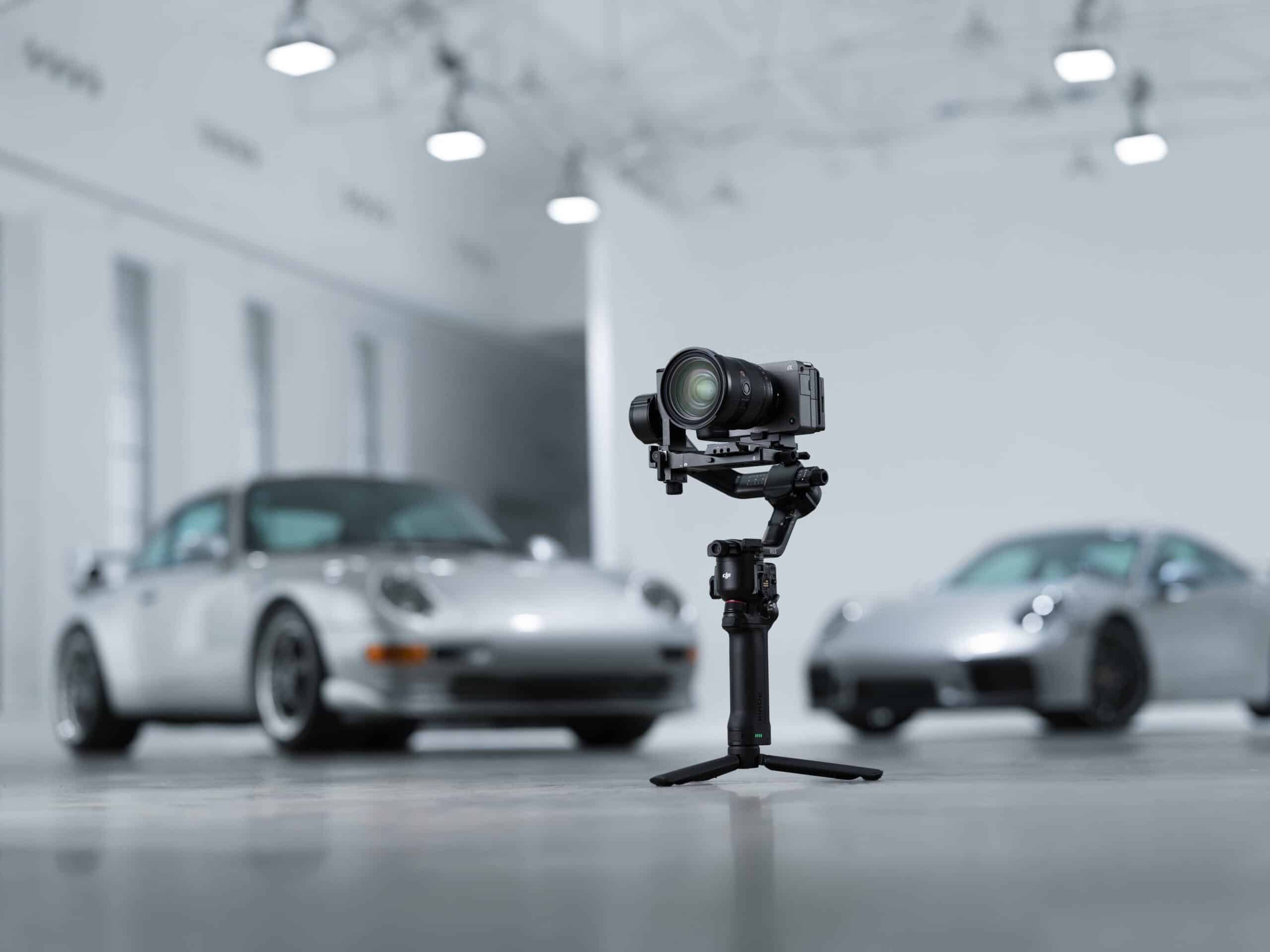 Der DJI RS 5 im Zentrum – entwickelt für präzise Stabilisierung und professionelle Kamerakontrolle.